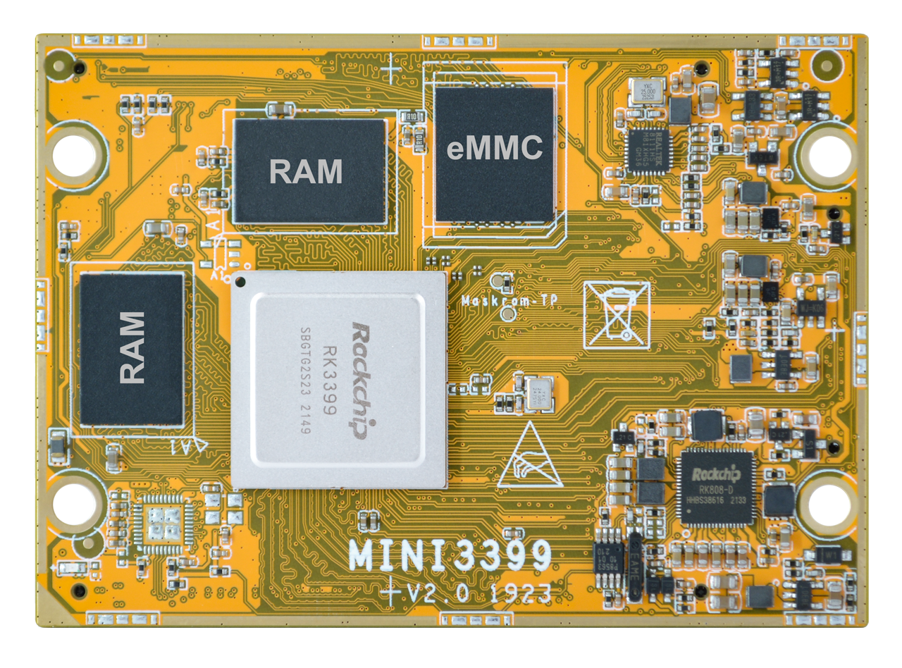 The MINI3399 SoM features a Rockchip RK3399 Hexa-core processor, supports 4K video decoding and 4K display output, and Mali-T860 MP4 GPU provides good graphics processing capabilities. This RK3399 SoM offers a range of connectivity options, including USB ports, Gigabit Ethernet, Wi-Fi, and Bluetooth, ensuring that it can easily interface with various peripherals and networks. It is a versatile platform that can be used in various applications, including industrial automation, robotics, digital signage, IoT devices, and more.